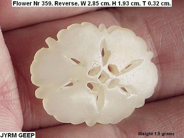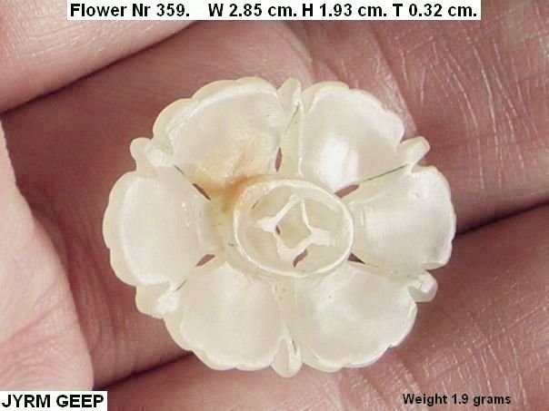 The heart of the flower is shaped like a coin symbolizing a wish to become wealthy. This type of flower is not depicted in professor Cheng Te-k’un’s book ‘Jade Flowers and Floral Patterns in Chinese Decorative Art ‘.