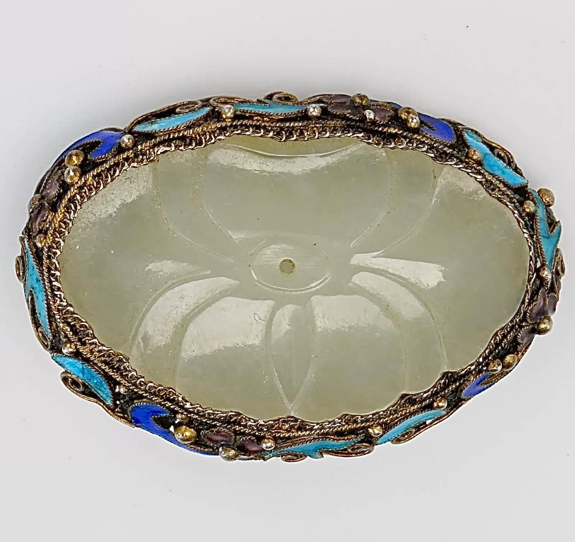 This type of flower is not depicted in professor Cheng Te-k’un’s book ‘Jade Flowers and Floral Patterns in Chinese Decorative Art ‘. A very similar flower mounted in a brooch (see last photo) was offered for sale on eBay.