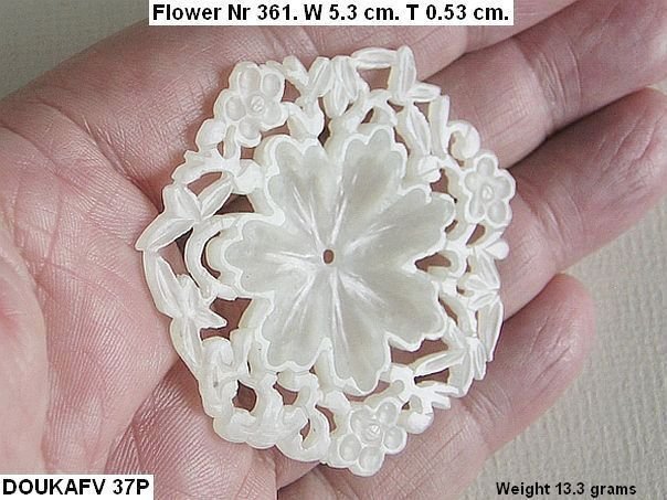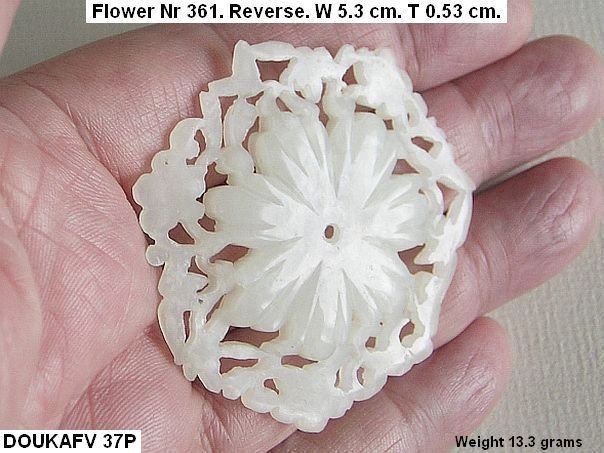 Openwork rosette depicting the ’Three friends of Winter’, the plum tree, pine tree and bamboo. The pine tree and the bamboo remain green even in icy winters while the plum is the first to bloom every year. They are admired for their resistance to the elements. All three are symbols of longevity. The centre is formed by a Chrysanthemum flower, symbol of Longevity because of its Health giving properties. A similar type of flower (nr 380) is depicted in professor Cheng Te-k’un’s book ‘Jade Flowers and Floral Patterns in Chinese Decorative Art’。