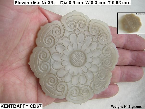Huge ‘brown sugar’ colored flower shaped jade disc. One of the two largest in the collection. A similar type of flower (nr 415) is depicted in professor Cheng Te-k’un’s book ‘Jade Flowers and Floral Patterns in Chinese Decorative Art’。