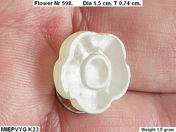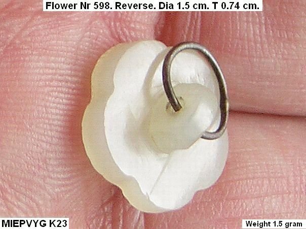 White flower which is in fact a button that was made during the latter part of the Qing period (1644 - 1912). This type of flower is not depicted in professor Cheng Te-k’un’s book ‘Jade Flowers and Floral Patterns in Chinese Decorative Art ‘.