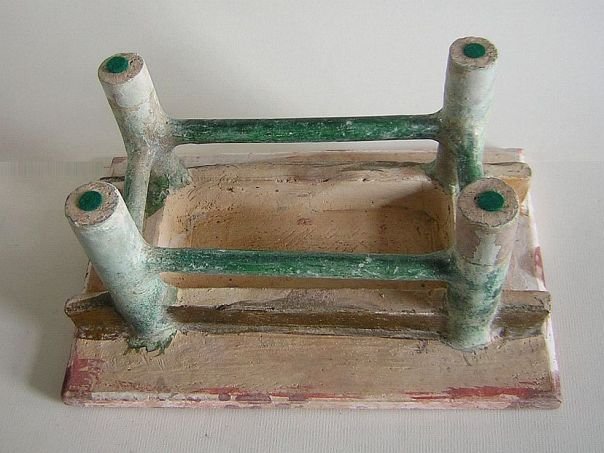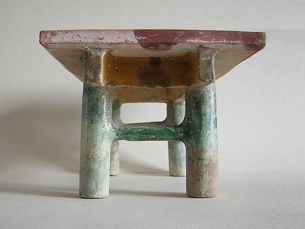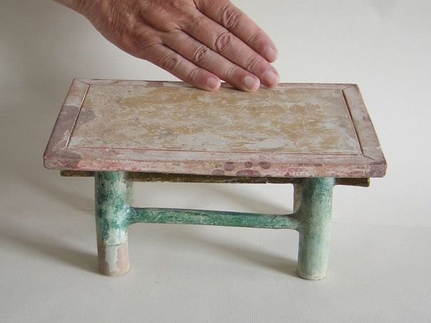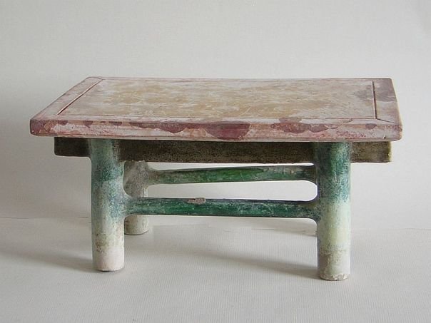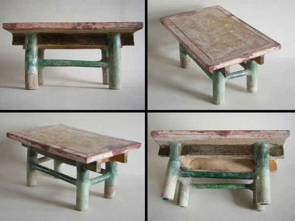 Miniature green glazed and cold-painted table. It dates from the Ming period (1368 – 1644). Length top 25.8 cm. Width 16.5 cm. Height 12.7 cm. THIS ITEM WAS SOLD AT AUCTION IN 2021.