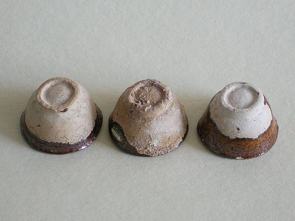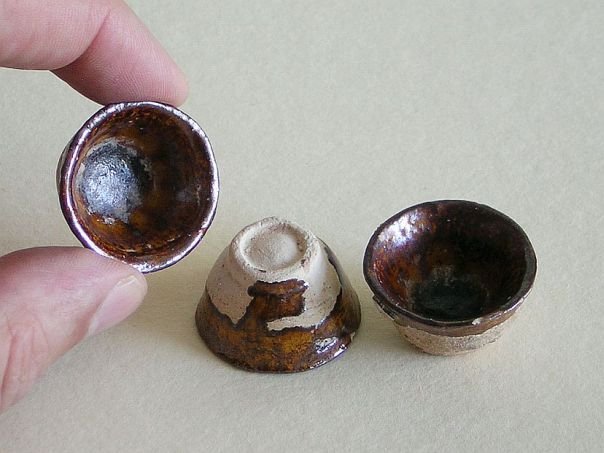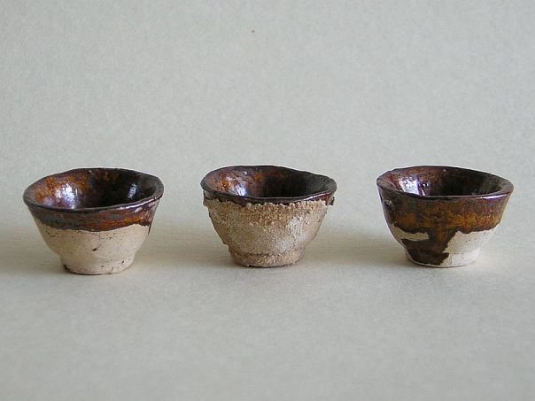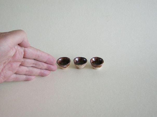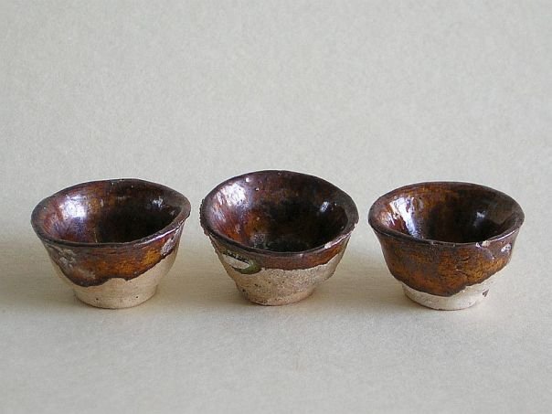 Miniature set of three brown glazed pottery cups. Cups of this type were used to drink wine or tea from. The cups date from the Ming period (1368 – 1644). Diameter at the rim 3.2 cm. Diameter at the base 1.8 cm. Height 1.9 cm. THESE ITEMS WERE SOLD AT AUCTION IN 2022.