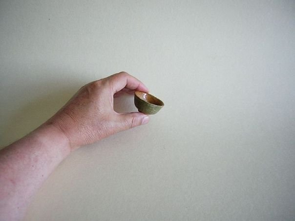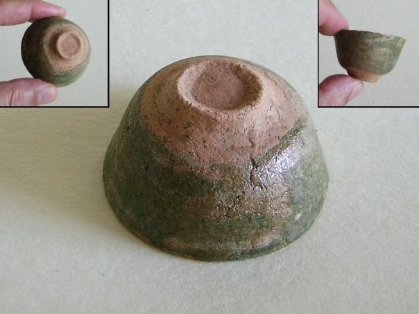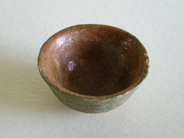 Miniature green and amber glazed pottery bowl of a slightly wider format than usual. It dates from the Ming period (1368 – 1644). Diameter at the rim 4.9 cm. Diameter at the base 2.2 cm. Height 2.7 cm. THIS ITEM WAS SOLD AT AUCTION IN 2022.