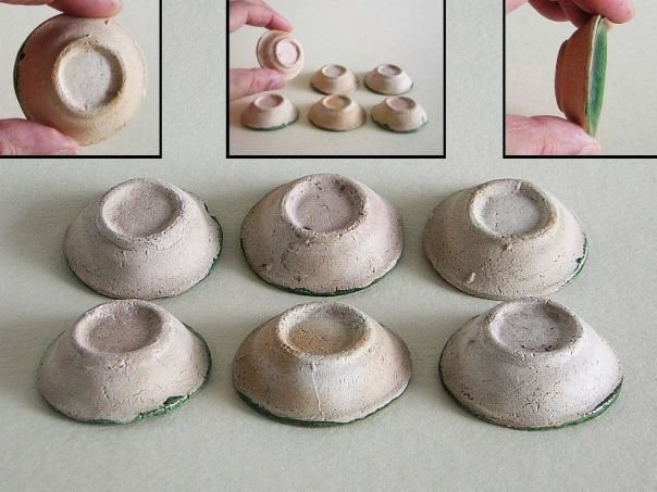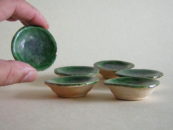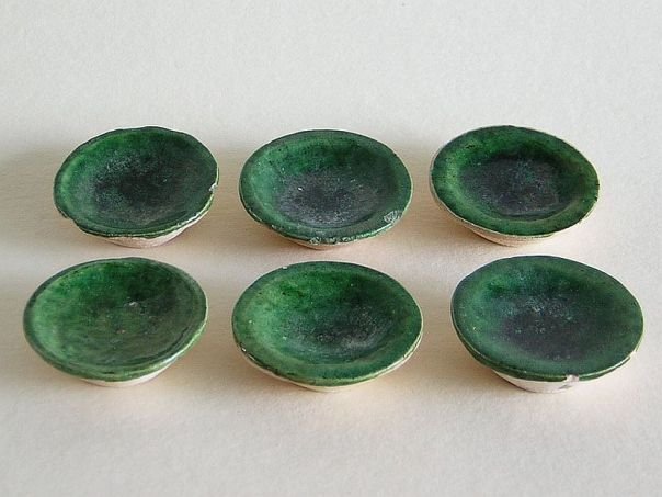 Miniature green glazed pottery set of six saucers. Each one is still in good condition apart from some minor rim chips. The saucers date from the Ming period (1368 – 1644). Diameter at the rim 4.9 cm. Diameter at the base 3.4 cm. Height 1.5 cm. THESE ITEMS WERE SOLD AT AUCTION IN 2022.